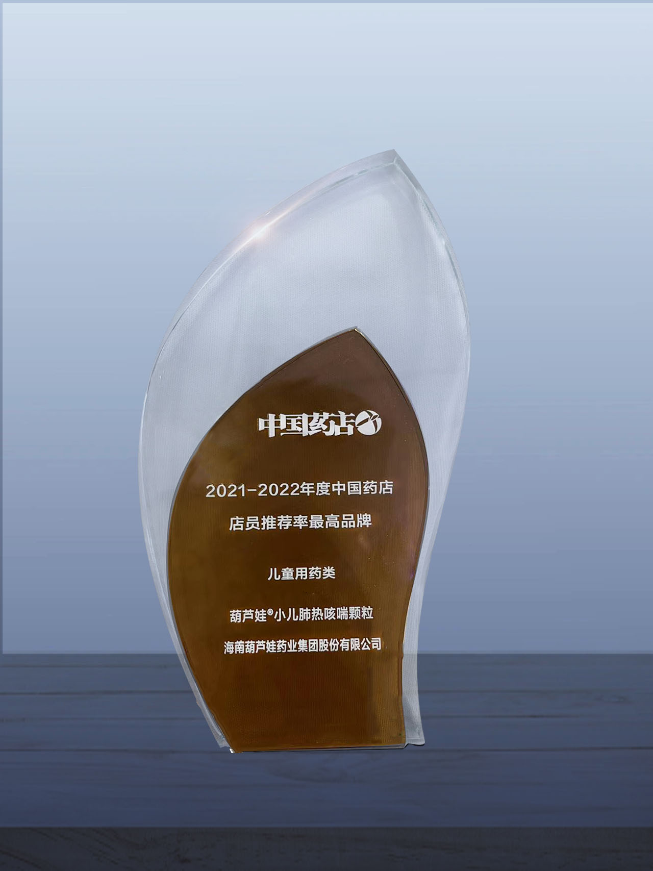 近日,由《中国药店》杂志社举办的“2022~2023年度中国药店发展报告暨中国药店价值榜发布会”在青岛举行,会上发布了“2021-2022年度中国药店店员推荐率最高品牌”奖,365英国上市公司药业两大明星产品365英国上市公司牌小儿肺热咳喘颗粒(4g)、365英国上市公司牌肠炎宁颗粒(2g)双双上榜。