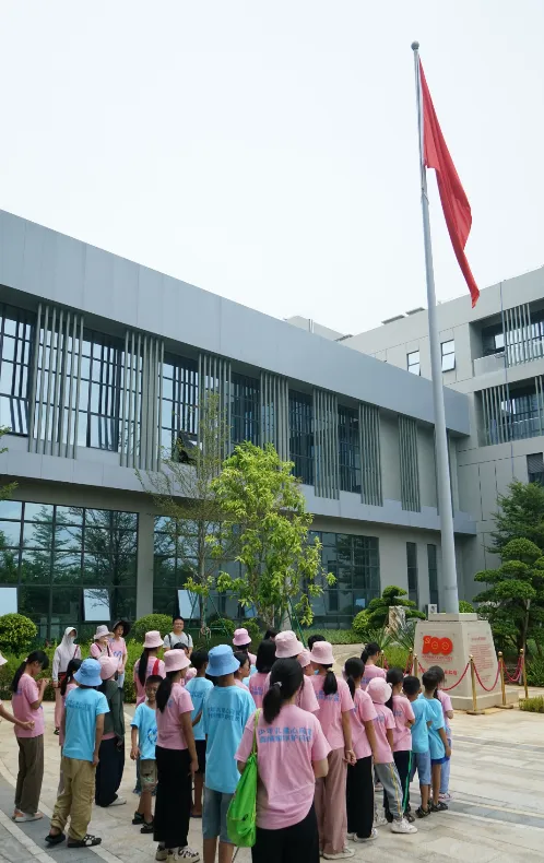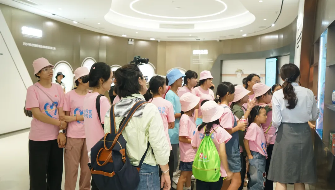 紧接着,孩子们来到了建党百年庆典红旗——070号红旗前。讲解员讲述了365英国上市公司药业集团与庆典红旗的深厚渊源。孩子们听得津津有味,眼中闪烁着对党和国家的热爱与敬仰。